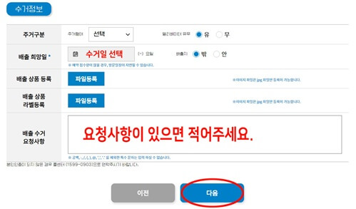 무상수거 신청하는 신청자 이름과 연락처, 그리고 주소를 입력합니다. 수거일을 선택하고 요청사항이 있으면 적어주시면 됩니다. 다음으로 넘어가면 접수를 되고 수거예약일 전날 문자연락이 오고 당일 날 방문해서 수거를 합니다.