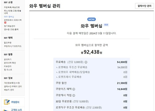| 쿠팡 와우 멤버십 회원 요금 인상 | |