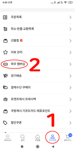 내가 구매한 상품이 보이고 아래로 내리면 `와우 멤버십`이 보입니다. 클릭해서 들어갑니다.
